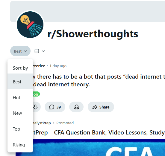 2. Sort the Subreddit. "Top" shows evergreen questions that keep coming up. "Hot" reveals what's trending right now, so you can sometimes grab an idea to share before everyone else does.